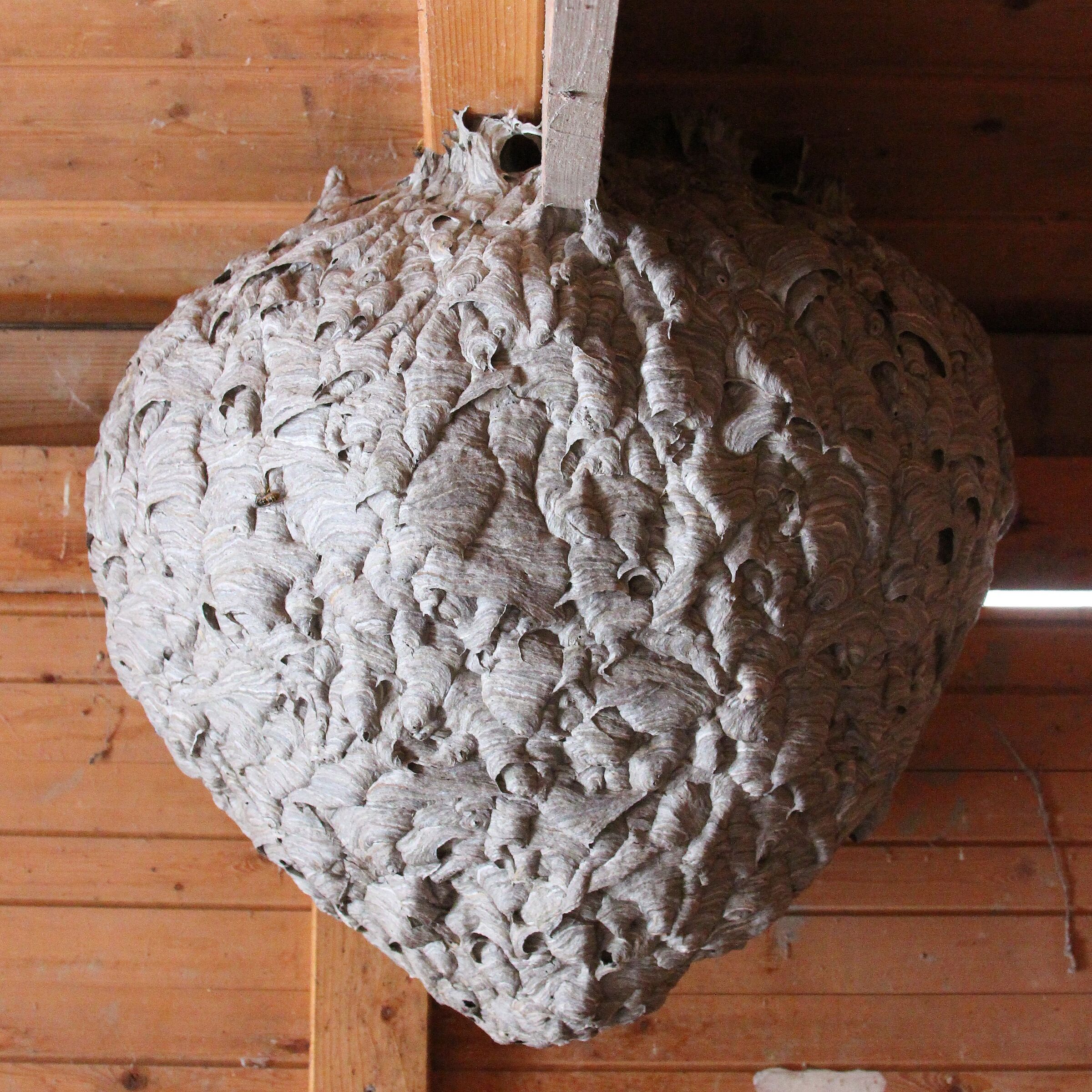 Beim Besuch konnte ein herzförmiges Nest abgenommen werden. Die Bestimmung der Wespenart ergab "Deutsche Wespe (Vespula germanica)", die zu den Echten Wespen gezählt wird. Die sichere Bestimmung gelingt über die Zeichnung des Kopfschildes, wobei hier am besten mehrere Individuen untersucht werden.
