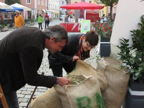 Neben den Informationen und zahlreichen Gesprächen gab es außerdem für alle Haustierbesitzer die Möglichkeit sich an der Heuaktion des BN zu beteiligen. Am Stand konnte ein großer Sack Heu mit vielen leckeren Kräutern aus der Abensaue als Vorrat für die Nager zu Hause erstanden werden.