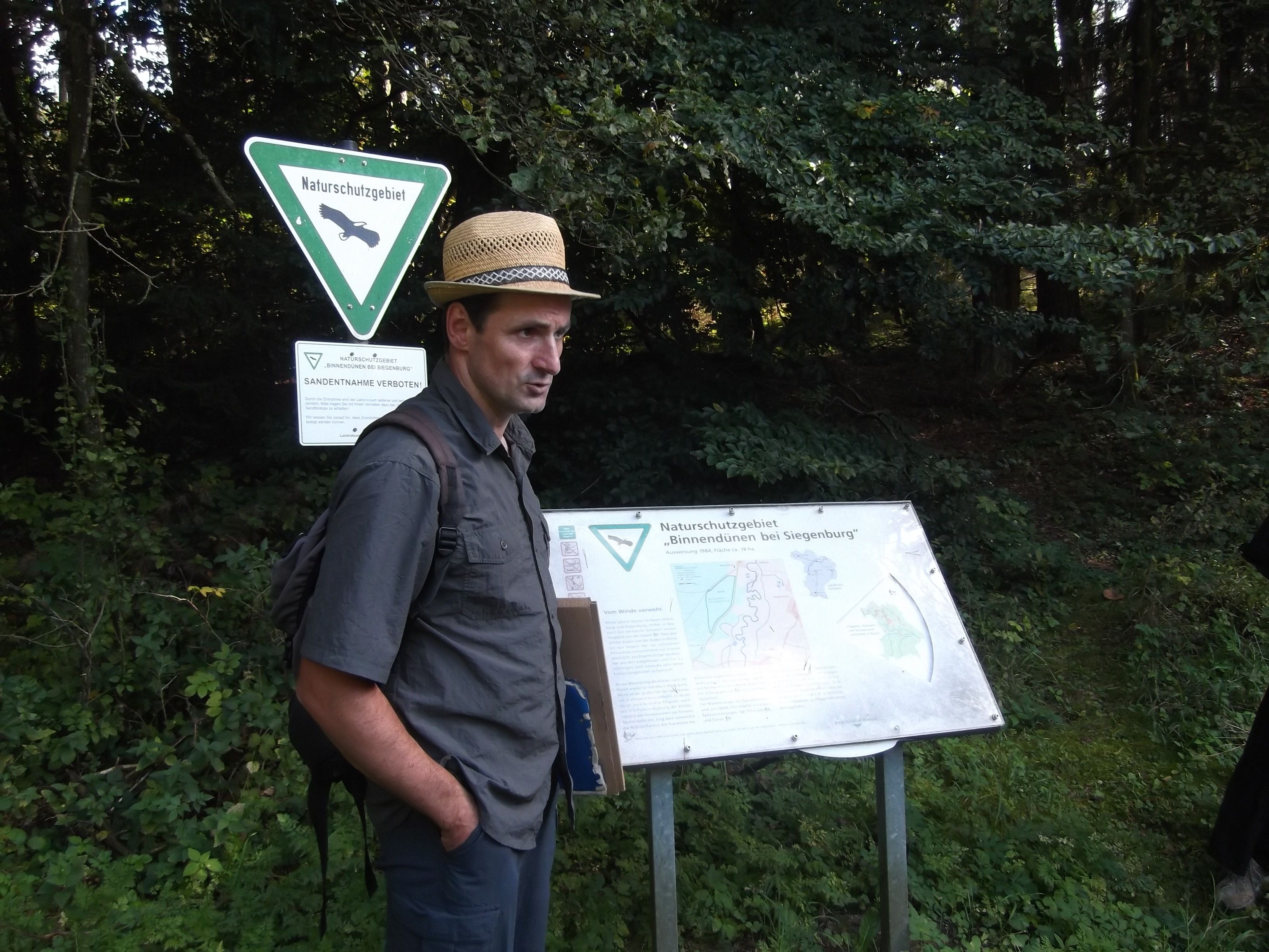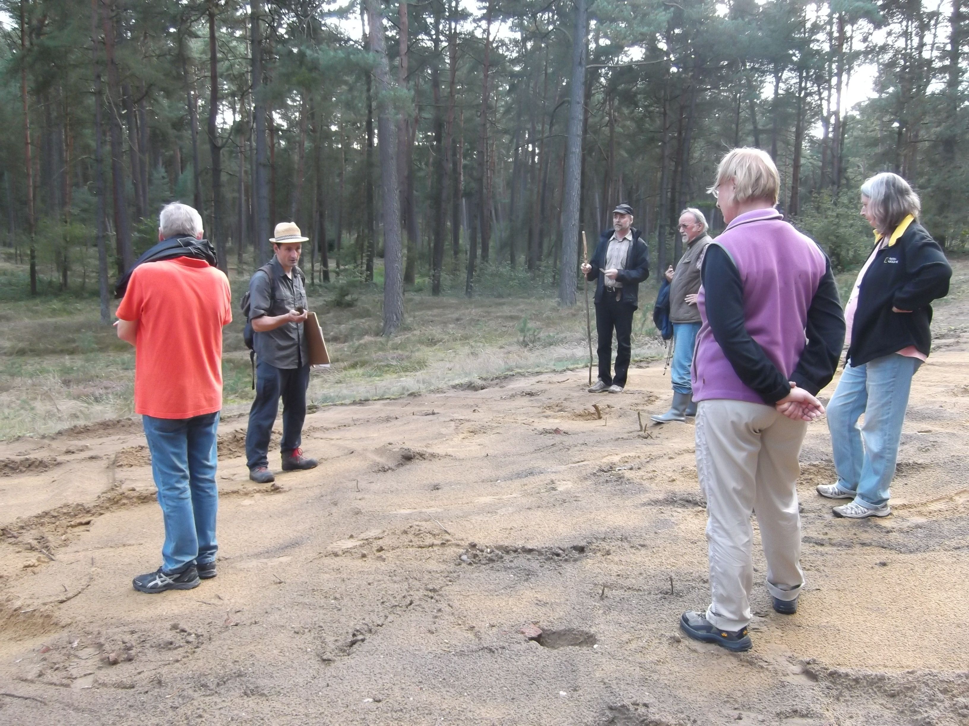Herr Robert Hierlmeier vom VöF gab eine sehr lehrreiche und interessante Führung durch die Binnendünen im Siegenburger Forst. Er gab Einblicke in die sehr aufwendige Pflege der Sanddünen ... ... und berichtete über den aktuellen Stand des Flugplatzgeländes. Neben sehr seltenen Pflanzen ... ... konnten wir auch einen Ameisenlöwen bei der Jagd in seinem Fangtrichter im Sand beobachten.